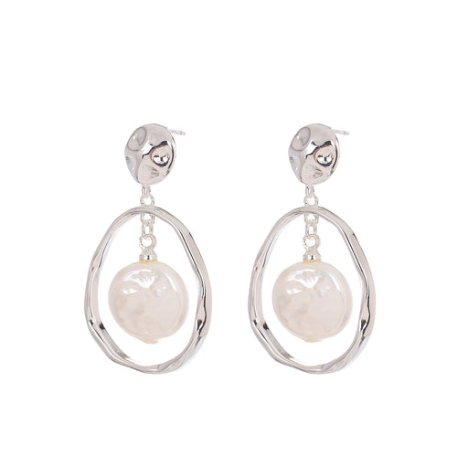 SILVER PLATED EARRINGS WITH WHITE PEARL.WITH A FREE GIFT BOX.E2012