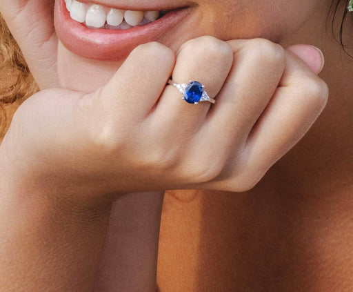 Capture attention with our rhodium plated ring with sapphire blue pendant and cubic zirconia stones. Add a touch of sparkle to your look. Adjustabl...