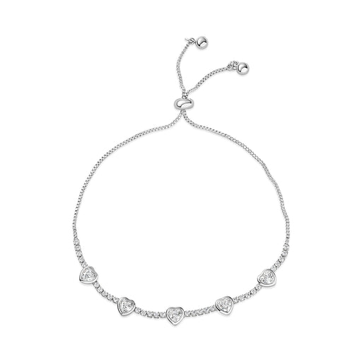 Add a touch of elegance with our adjustable rhodium plated heart pendant bracelet with cubic zirconia detailing. Simple and stylish, elevate your l...