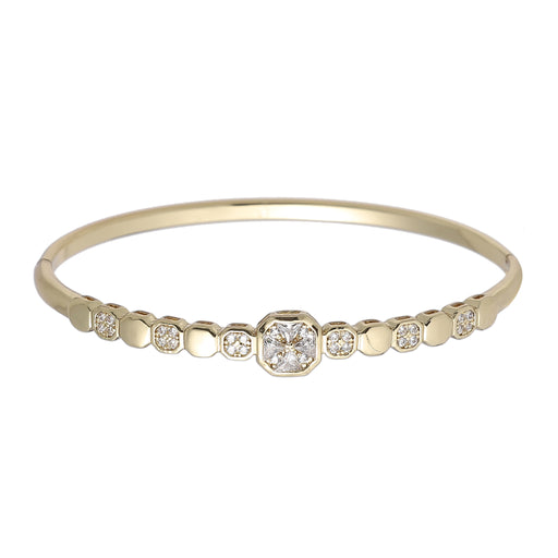 Add a touch of effortless elegance with our gold plated bangle, featuring  octagonal  pattern and cubic zirconia stones. Refine your style with eas...