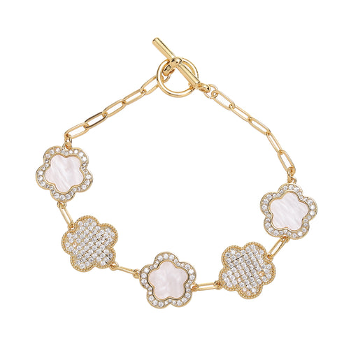 Stay on trend with our gold plated chain link bracelet, with clover pendants featuring cubic zirconia stones. Add some sparkle to your look. Suppli...