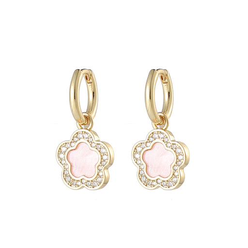 Stay on trend with our gold plated hoop earrings with pink flower hanging pendant and cubic zirconia detailing. Refine your look with ease. 24mm. S...