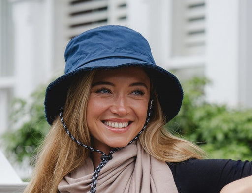 Stay stylish and dry with our navy waterproof bucket hat. A fashionable and versatile design that reverses to fold into a convenient carry pouch. P...
