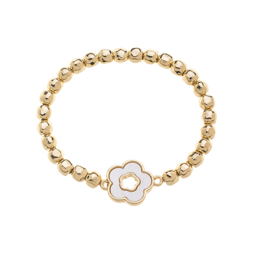 This handcrafted semi-precious bracelet is Gold plated with a clover pendant. Supplied in a pouch on a hanging card.