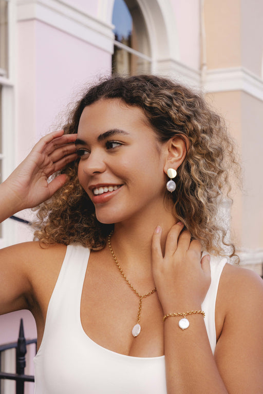 Stay on trend with our gold plated, fresh water pearl pendant bracelet. Elevate your style with ease.Supplied with a complimentary gift box.