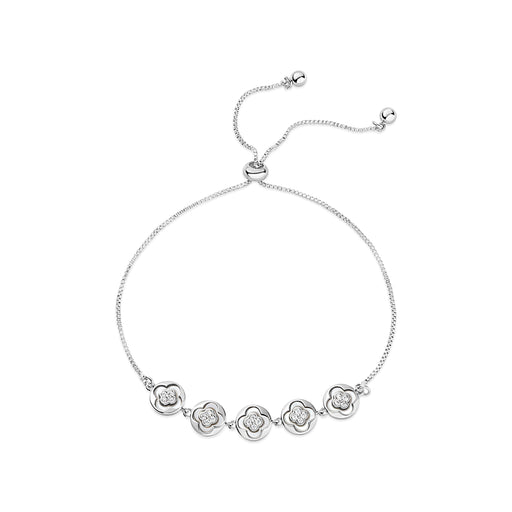 Add a touch of elegance to your style with our rhodium plated adjustable bracelet, with joined clover pendants featuring cubic zirconia stones. Add...