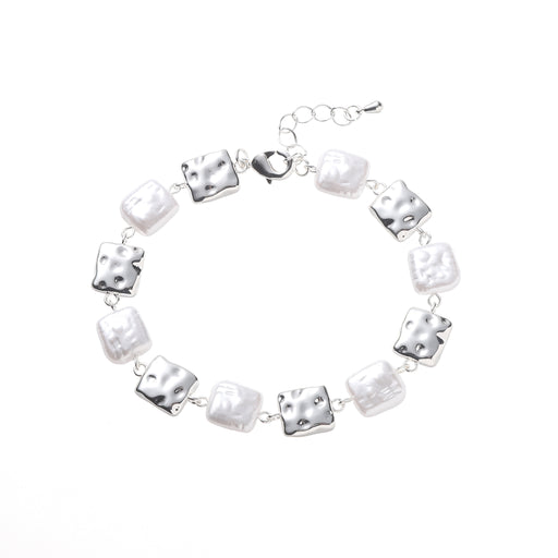 Elevate your style with our silver plated bracelet with alternating silver and pearl square pendants. Transform your look with ease. Supplied with ...