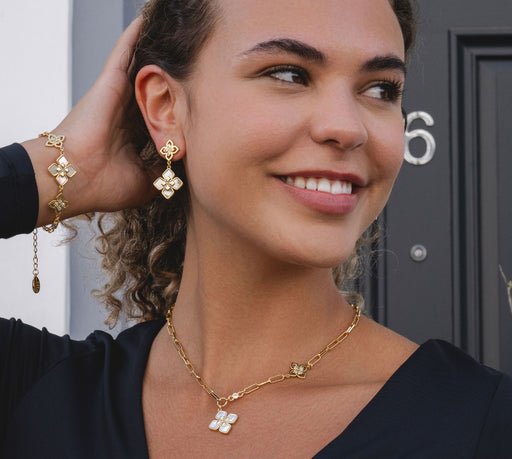 Stay on trend with our gold plated chain link bracelet, with clover pendants featuring cubic zirconia stones. Add some sparkle to your look. Suppli...