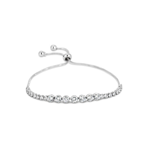 RHODIUM PLATED ADJUSTABLE BRACELET WITH CUBIC ZIRCONIA STONES B1675