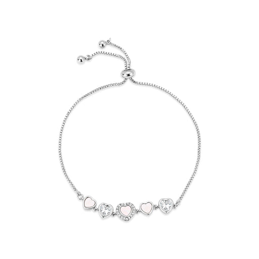 Add a touch of elegance with our adjustable rhodium plated heart pendant bracelet with cubic zirconia detailing. Simple and stylish, elevate your l...