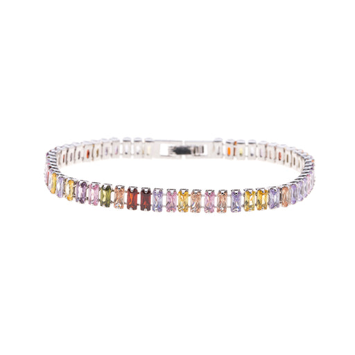 Multi Coloured Elegant Rhodium Plated Tennis Bracelet B20159