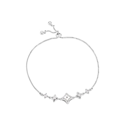 Add a touch of elegance to your style with our rhodium plated adjustable bracelet, with joined clover pendants featuring cubic zirconia stones. Add...