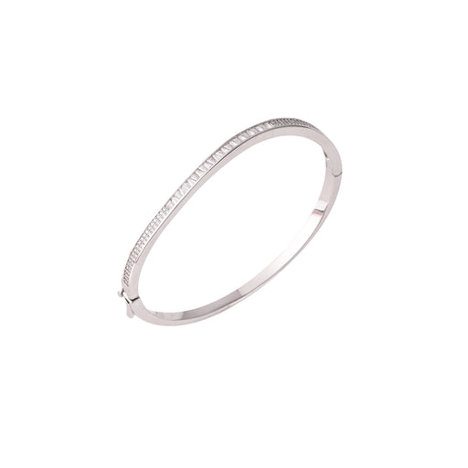 RHODIUM PLATED BANGLE WITH CUBIC ZIRCONIA STONES B1896