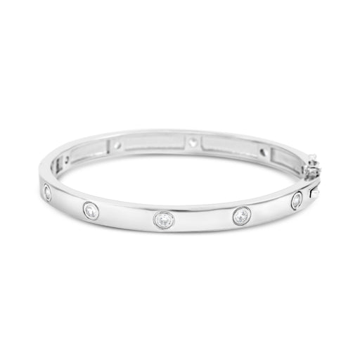RHODIUM PLATED BANGLE WITH CUBIC ZIRCONIA STONES B1891RHODIUM