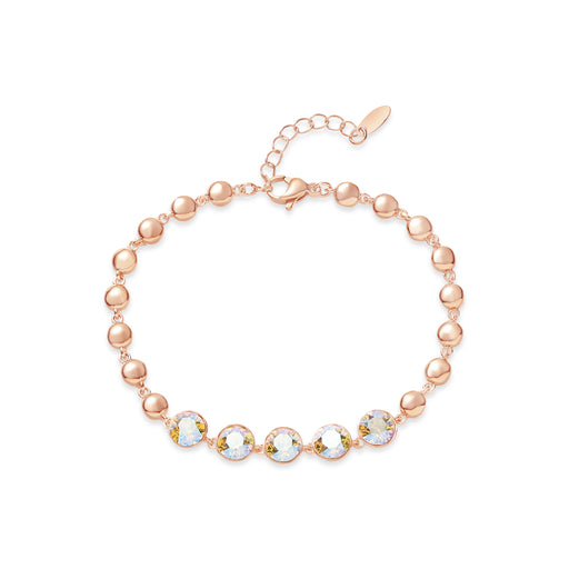 Capture attention with our gold plated beaded bracelet, with pink crystals. Elevate your style with ease. Supplied with a complimentary gift box.