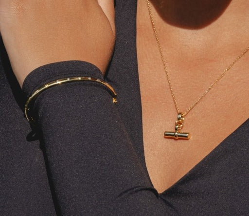 Add some sparkle to your look with our gold plated bangle with cubic zirconia stones. Elevate your style with ease. Supplied with a complimentary g...