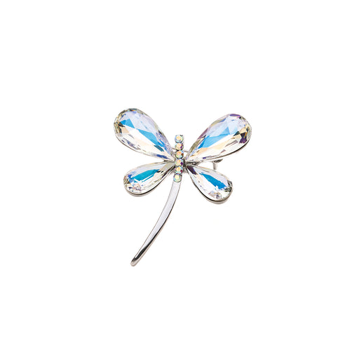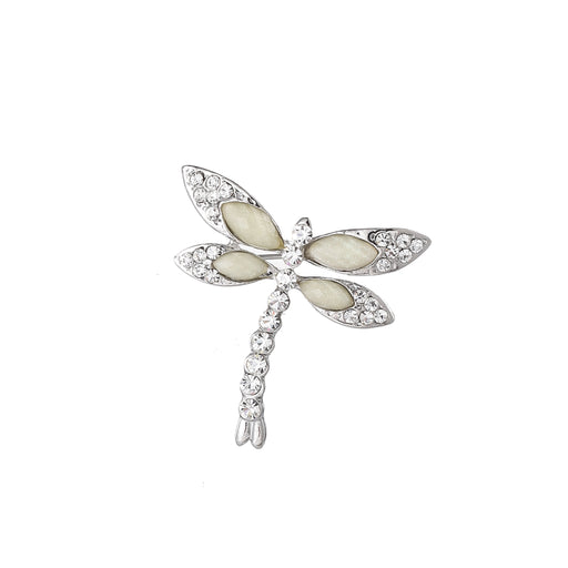 Elevate your style with our delicate rhodium plated dragonfly brooch with crystal detailing. Add some sparkle to your look. 35mm wide. Supplied wit...