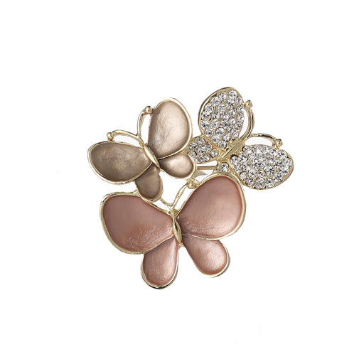 Add a touch of elegance with our gold plated butterfly trio brooch, with crystal stone detailing. Elevate your style with ease. 35mm wide. Supplie...