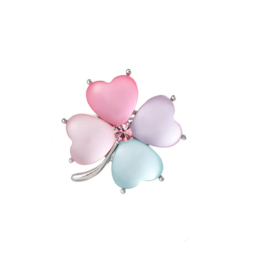 Capture attention with our delicate rhodium plated heart clover brooch, with pink crystal centre and coloured heart stones. Elevate your look with ...