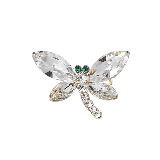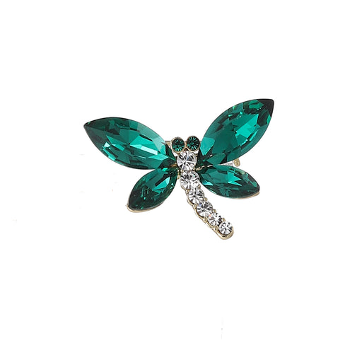 Elevate your style with our delicate gold plated dragonfly brooch with green glass and crystal detailing. Add some sparkle to your look. 30mm wide....