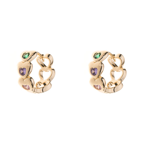 Enhance your look with our gold plated colourful cubic zirconia heart hoop earrings. Stay on trend with ease. 15mm. Supplied with a complimentary ...