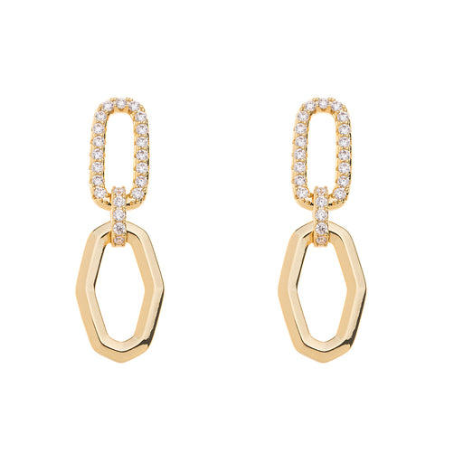 Capture attention with our beautiful gold plated hoop earrings with white cubic zirconia stones and interlocked hexagons. Add some sparkle to your ...