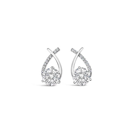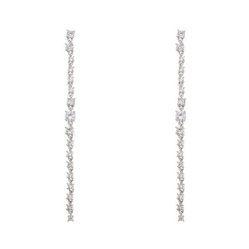 Add a touch of elegance with our rhodium plated drop earrings, with white cubic zirconia stones. Effortlessly stylish. 55mm. Supplied with a compli...