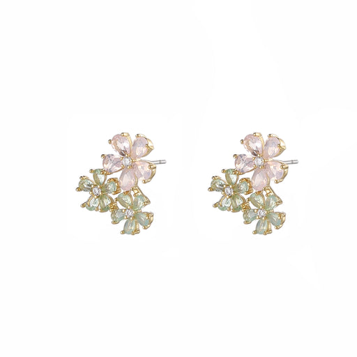 Elevate your style with our gold plated intricate flower trio earrings, with pink and green cubic zirconia centre. Add some sparkle to your look. 1...