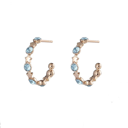 Capture attention with our gold plated asymmetric hoop earrings, with assorted aqua cubic zirconia and star pattern. Add some sparkle to your look....