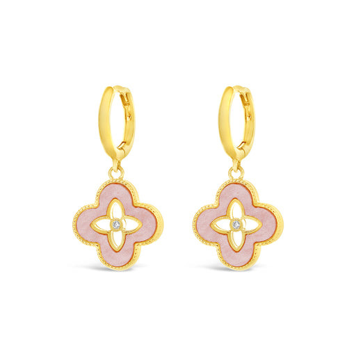 E1482 GOLD PLATED EARRINGS WITH ROSE QUARTZ SEMI PRECIOUS STONES