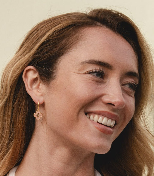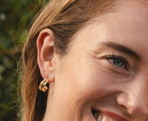 Capture attention with our gold plated hoop earrings, with semi precious rose quartz stones. Effortlessly elegant. 35mm. Supplied with a complimen...