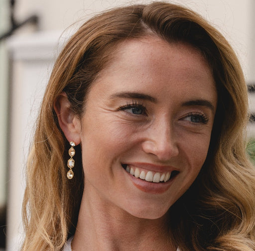 Add a touch of elegance and sparkle to your look with our cubic zirconia stone gold plated drop earrings. 27mm. Supplied with a complimentary gift...