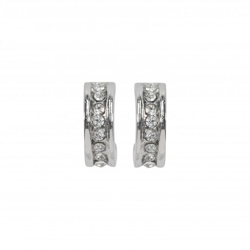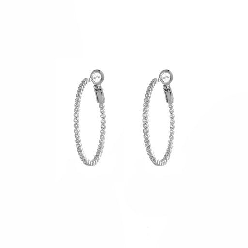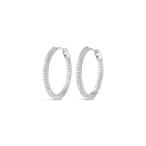 Refine your style with our rhodium plated hoop earrings with cubic zirconia stone detailing. Add some sparkle to your look. 40mm drop. Supplied wit...