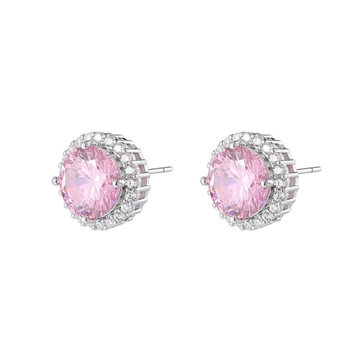 Add some sparkle to your look with our rhodium plated stud earrings with pink cubic zirconia stone detailing. Refine your look with ease. 12mm. Su...