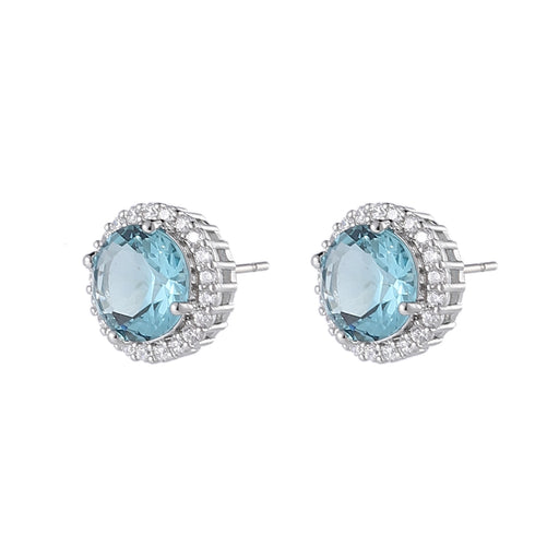 Add some sparkle to your look with our rhodium plated stud earrings with aqua cubic zirconia stone detailing. Refine your look with ease. 12mm. Su...