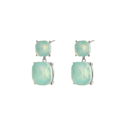 Capture attention with our rhodium plated intricate hanging earrings. With aqua and green cubic zirconia stone detailing. Elevate your style with e...