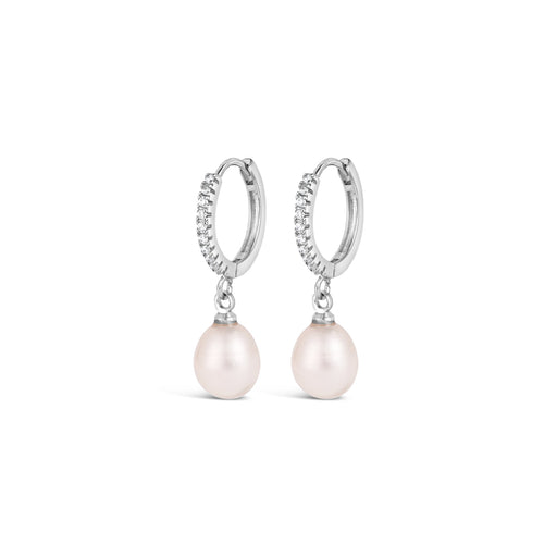 Stay on trend with our rhodium plated hoop earrings with cubic zirconia detailing and hanging beads. Add some sparkle to your look. 28mm. Supplied ...