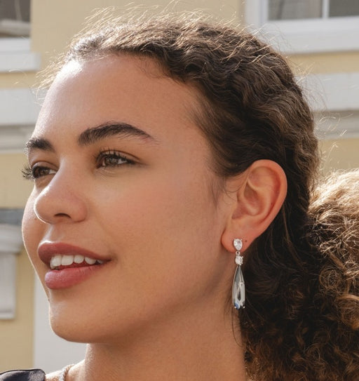 Add some sparkle to your look with our rhodium plated droplet hanging earrings with cubic zirconia stones. The perfect addition to any look. 25mm. ...