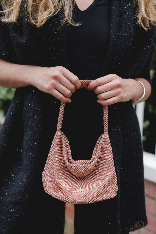 Capture attention with our pink handbag with rose and pink crystal stones from our Isabella collection. Chain shoulder strap included. Other colour...