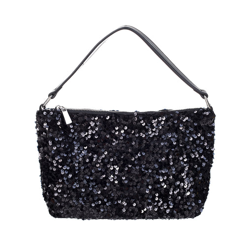 Capture attention with our black handbag with black crystal stones and zip top from our Olivia collection. Wrist strap and chain shoulder strap inc...