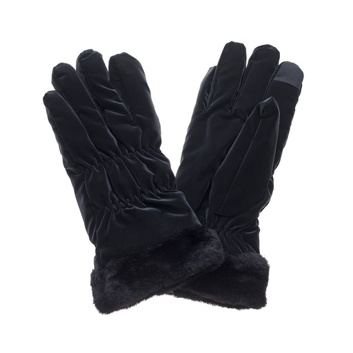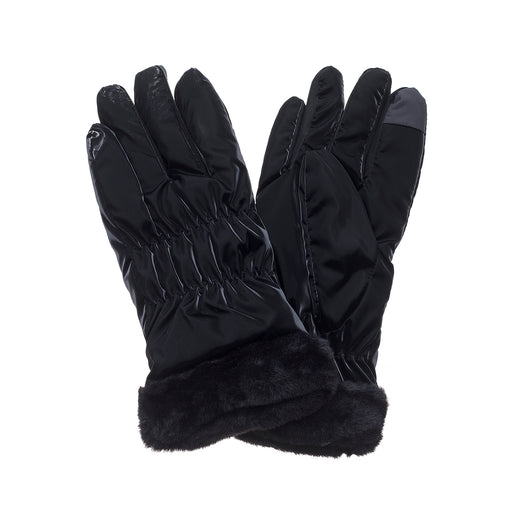 Stay warm with our padded shiny black winter gloves, with fluffy cuffs. Elevate your look with ease.