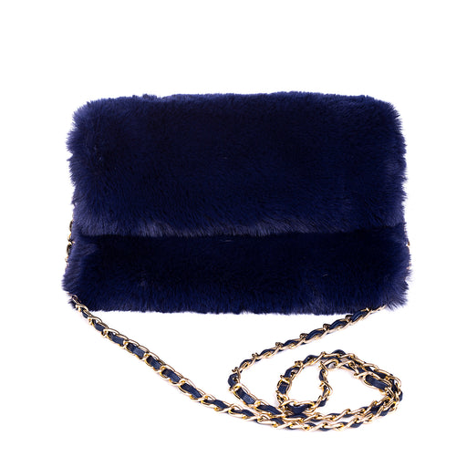 Elevate your look with our soft faux fur navy tote bag. Spacious and stylish, coordinate your look with matching accessories. Other colours availa...