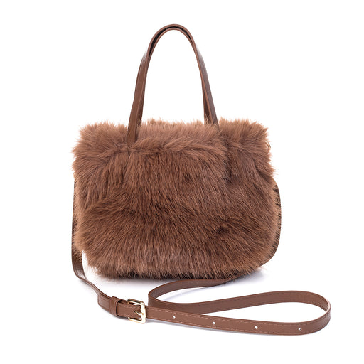 Elevate your look with our stylish and soft faux fur olive handbag. Coordinate your look with matching accessories. Extra shoulder strap included....