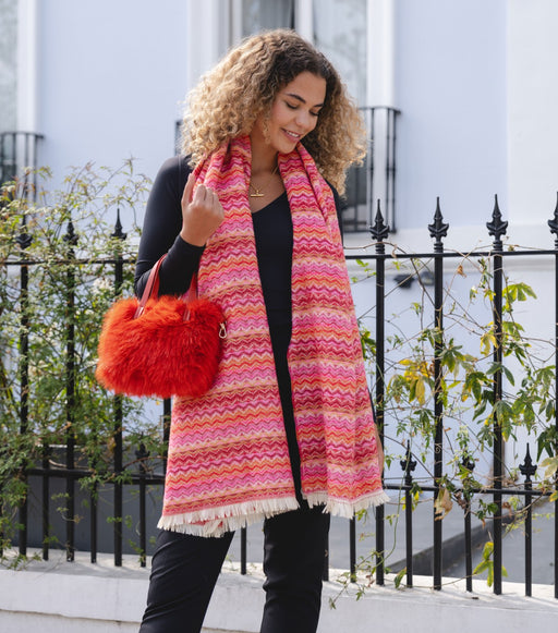 Elevate your look with our stylish and soft faux fur orange handbag. Coordinate your look with matching accessories. Extra shoulder strap included...