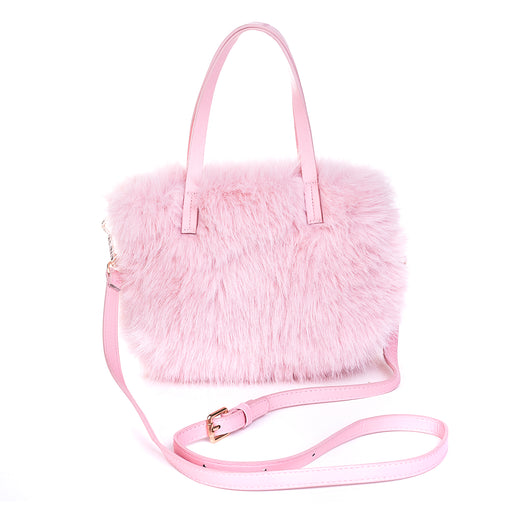 Elevate your look with our stylish and soft faux fur pink handbag. Coordinate your look with matching accessories. Extra shoulder strap included. ...