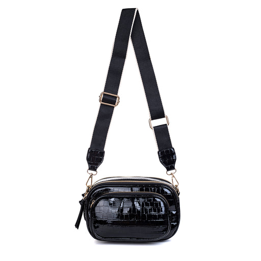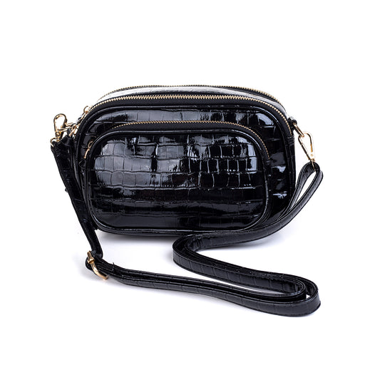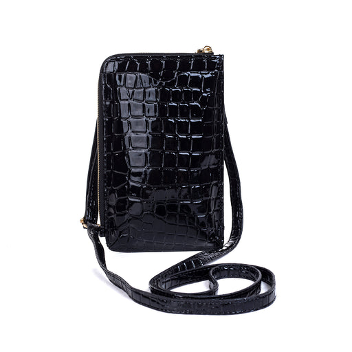Capture attention with our Billie collection raven compact textured handbag with press stud fastening. Perfect for mobile phone and essentials. Ide...