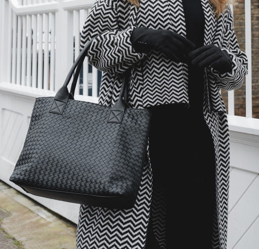 Stay on trend with our stylish black tote handbag from the Lucy collection. With a zip top, combine style and practicality with ease. Width 40cm, d...