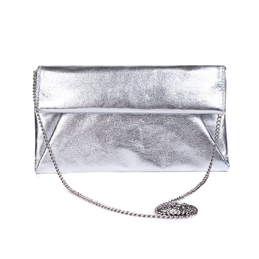 Capture attention with our pewter envelope handbag from the Evelyn collection. Add some sparkle to your look. Width 25cm, depth 5cm, height 16cm.