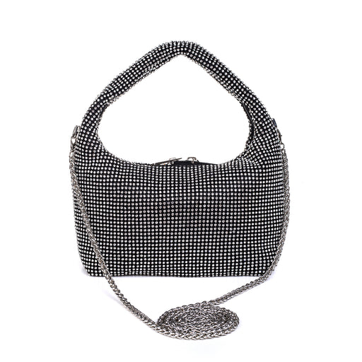Capture attention with our black handbag with black crystal stones and zip top from our Olivia collection. Wrist strap and chain shoulder strap inc...