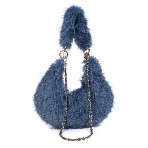 Elevate your look with our stylish and soft faux fur ice blue handbag. Coordinate your look with matching accessories. Extra shoulder strap includ...